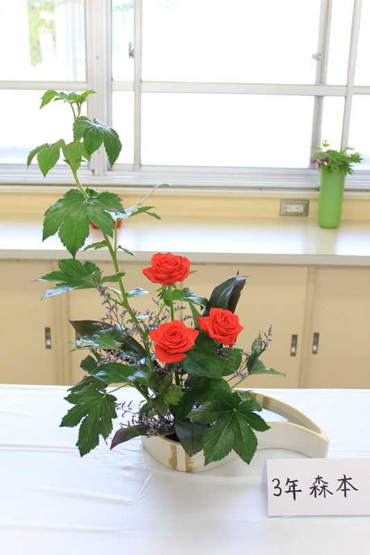 こんにちは!茶華道部です。私達は文化祭で、お茶席とお華の展示をしております。お茶席では美味しいお抹茶と和菓子が220円で召し上がれます。ぜひ来て下さい。浴衣姿でお待ちしております。