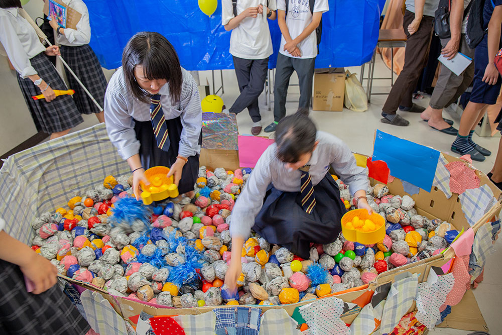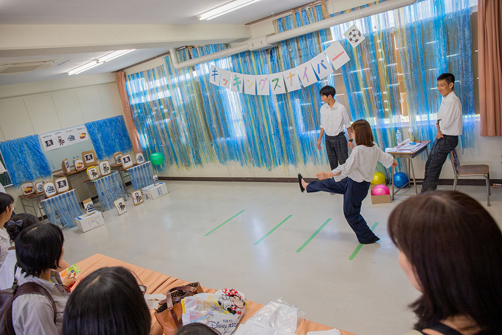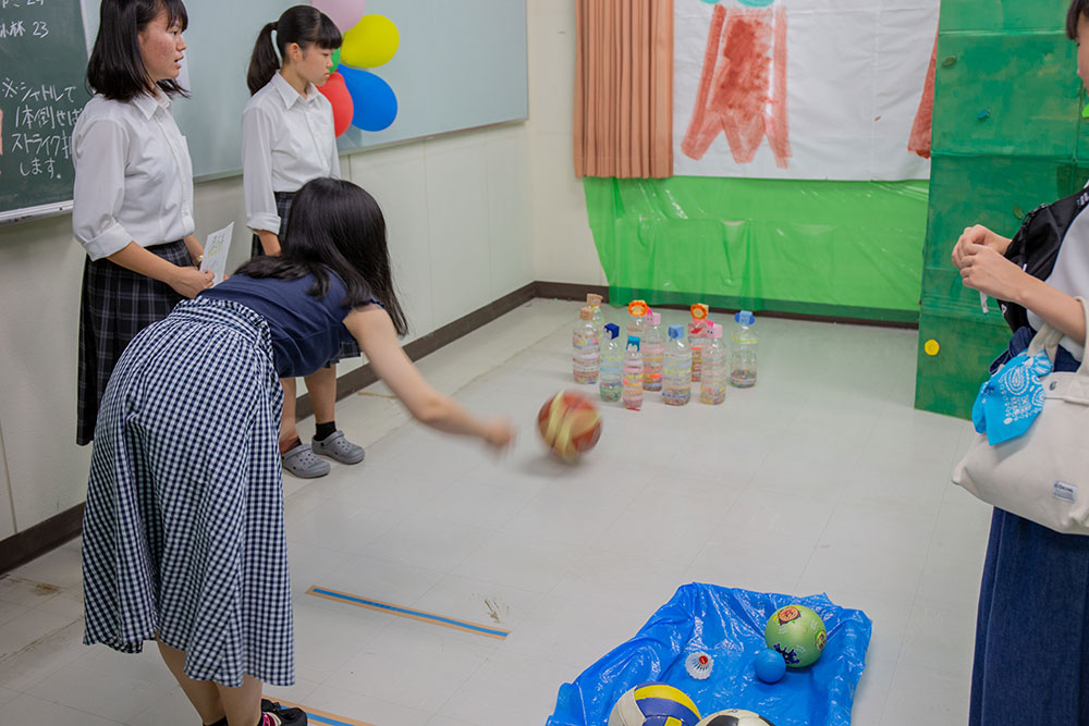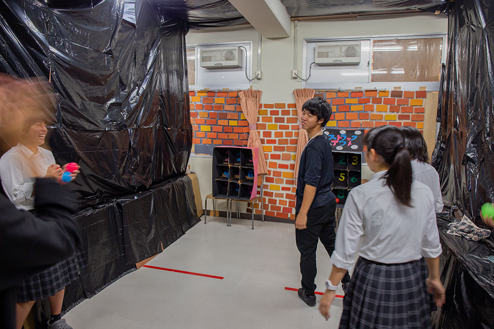 私たちは,クラス教室で「玉乗せスプーン障害物」を行います。バランスを保ちながら進む先には,行く手を阻む様々な障害物,ゲーム,平木先生…。来れば楽しい事間違いなし!B棟3階1-6へ!