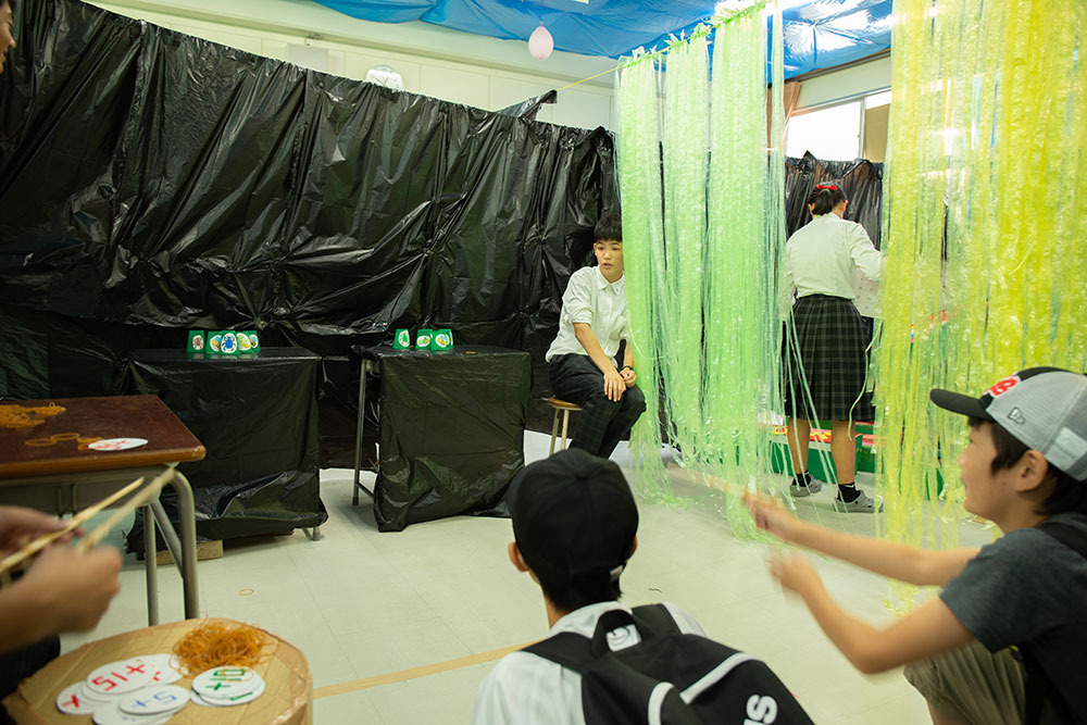 動物の森へようこそ!動物に関するクイズをしながら迷路に進んでいくゲームです。クラス紹介カットにあるような楽しいクイズがたくさんあります!是非足を運んでみてください!