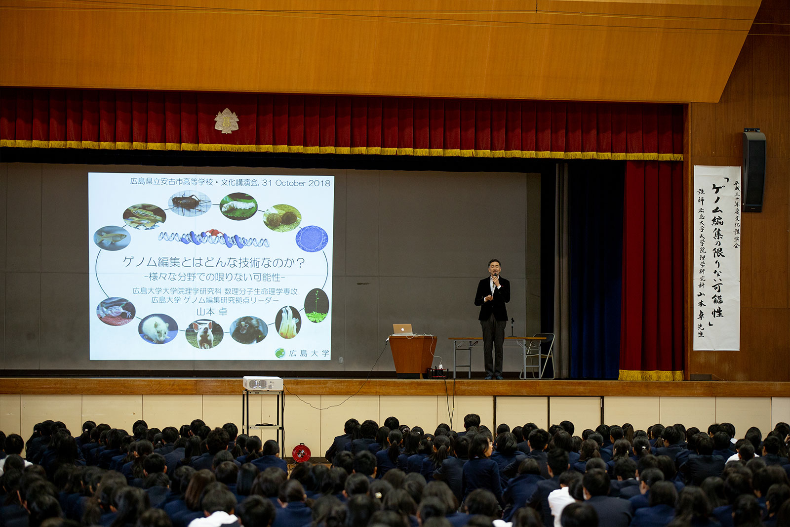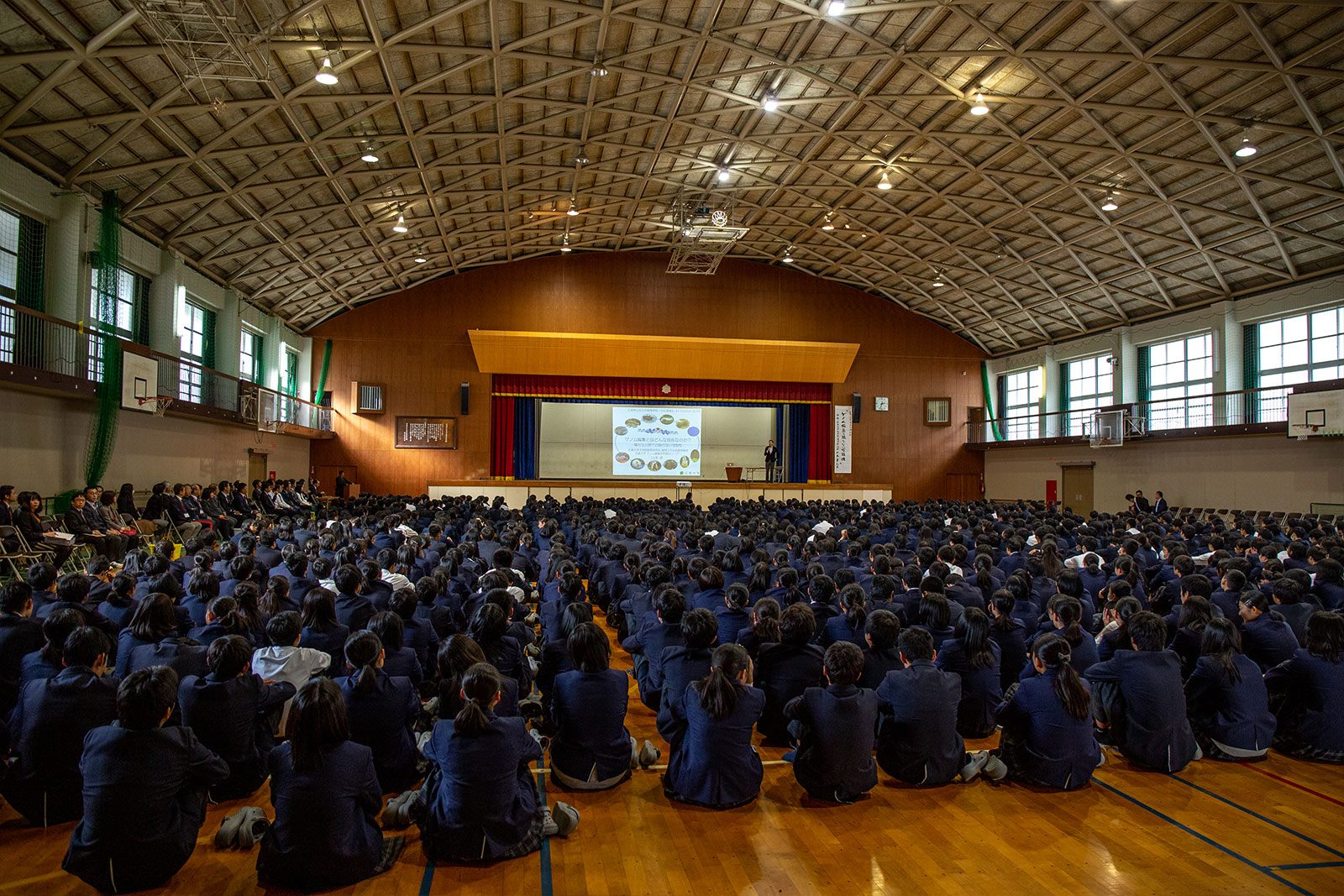 11月28日、安古市高等学校同窓会主催で、毎年11月の「学校へ行こう月間」の行事として、さまざまな分野で超一流の先生に来ていただいている文化講演会を開催しました。