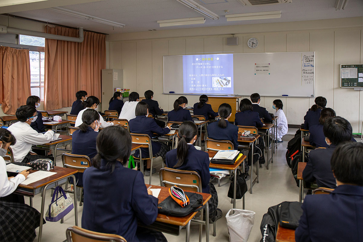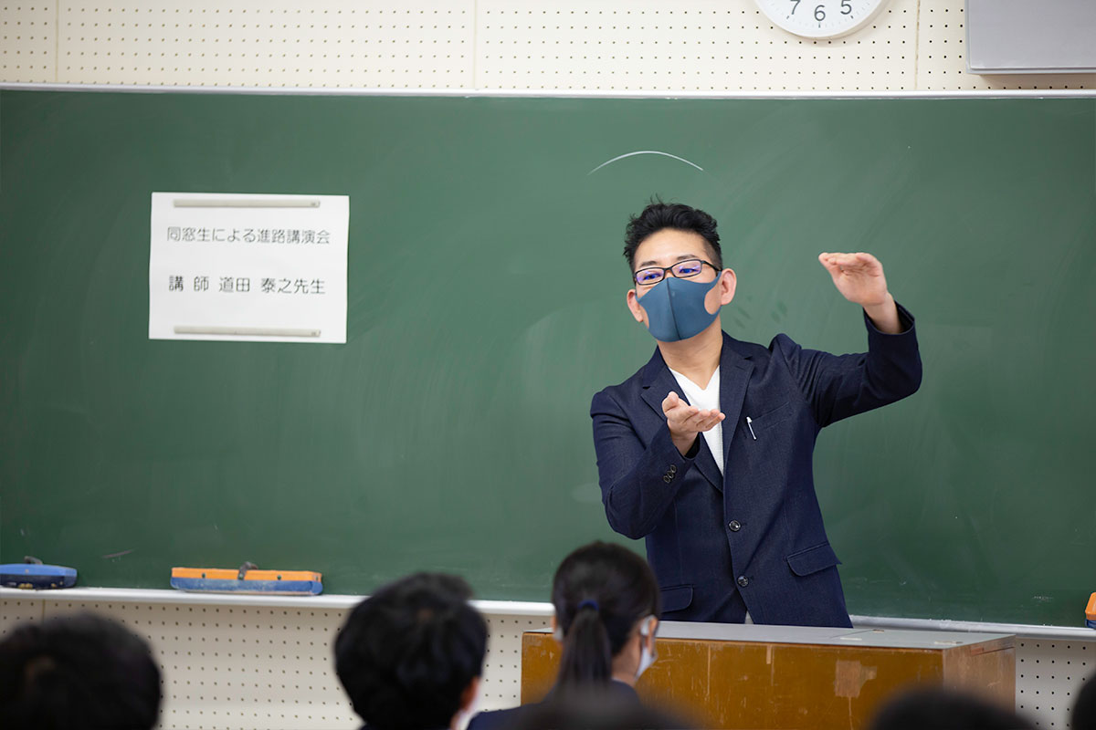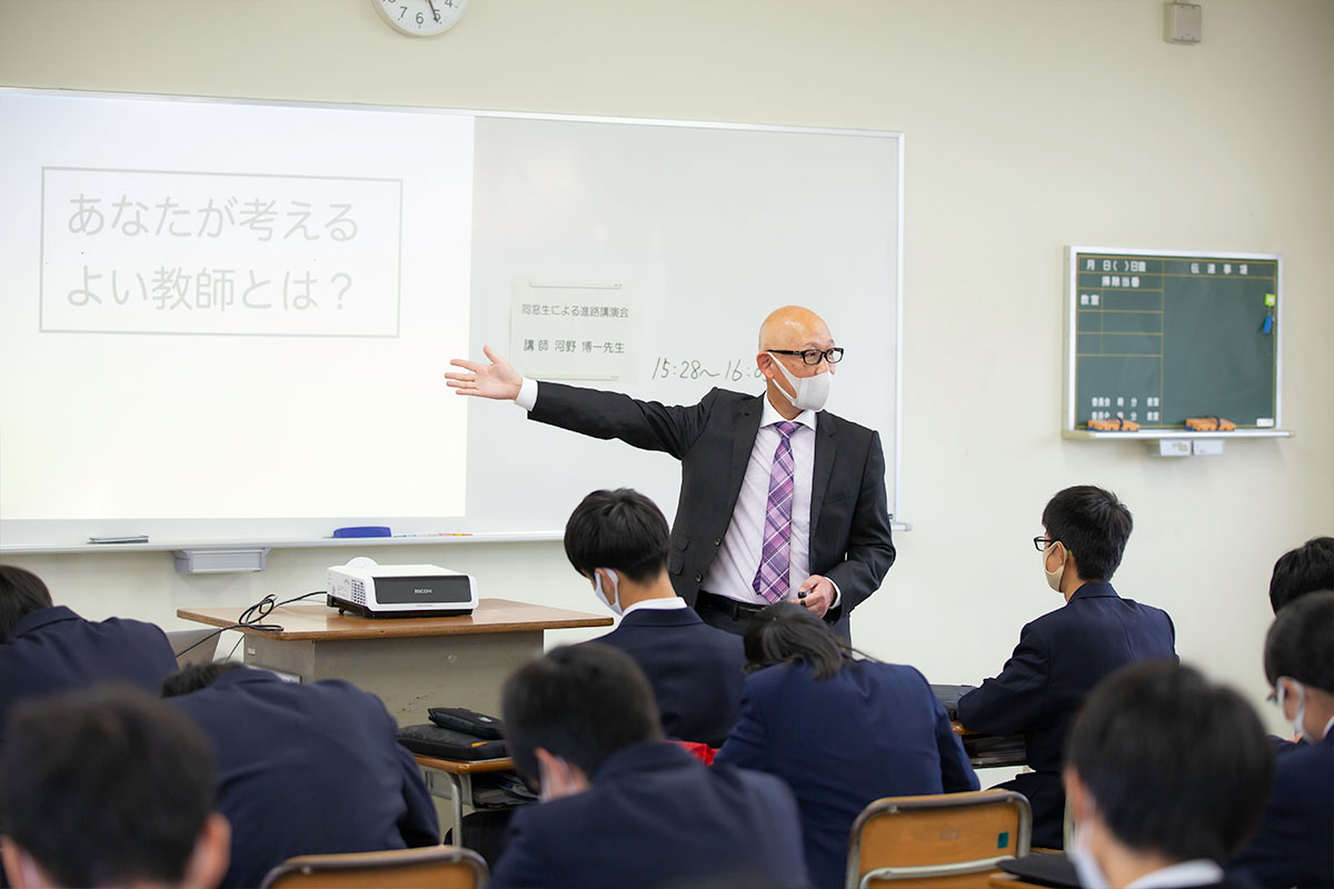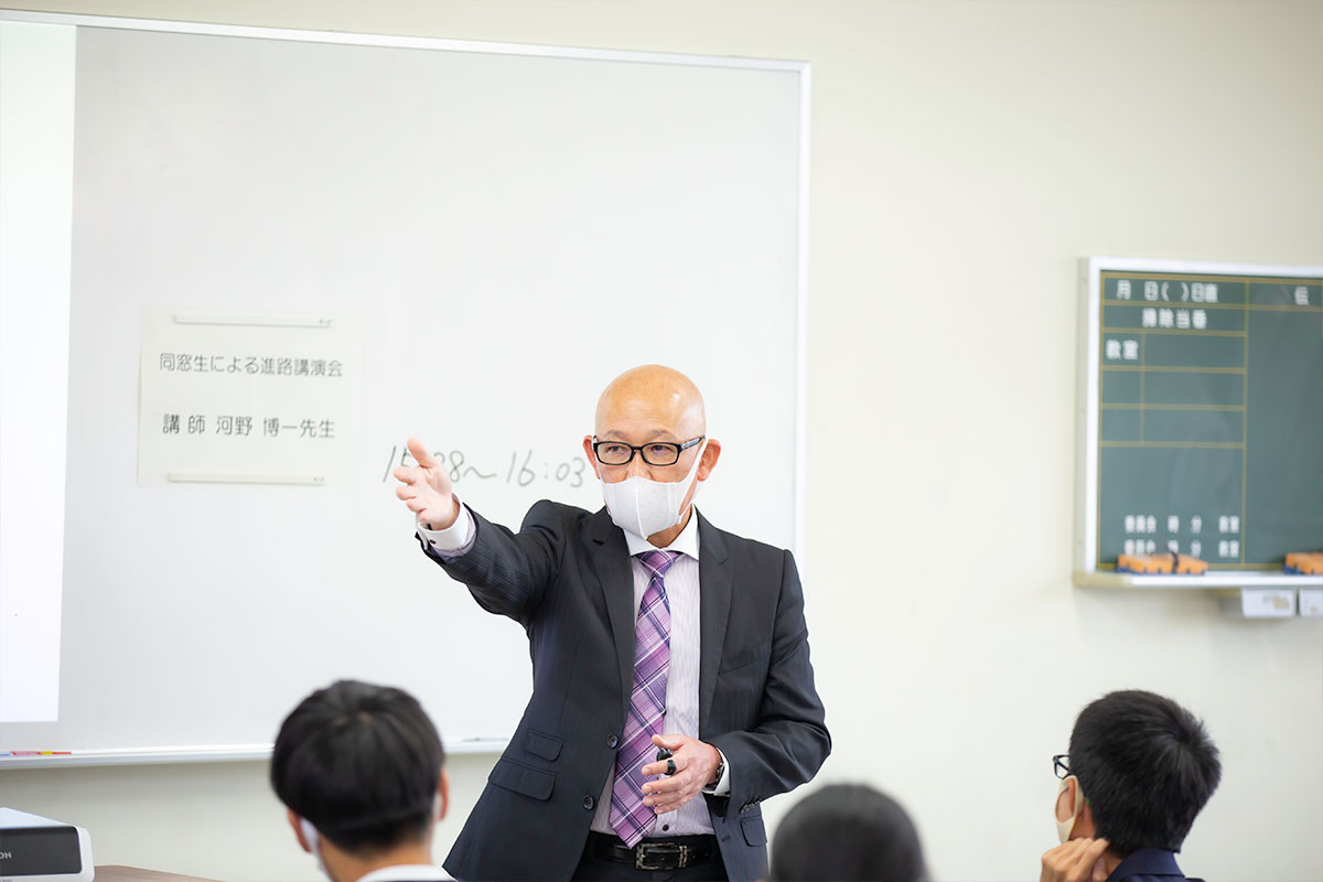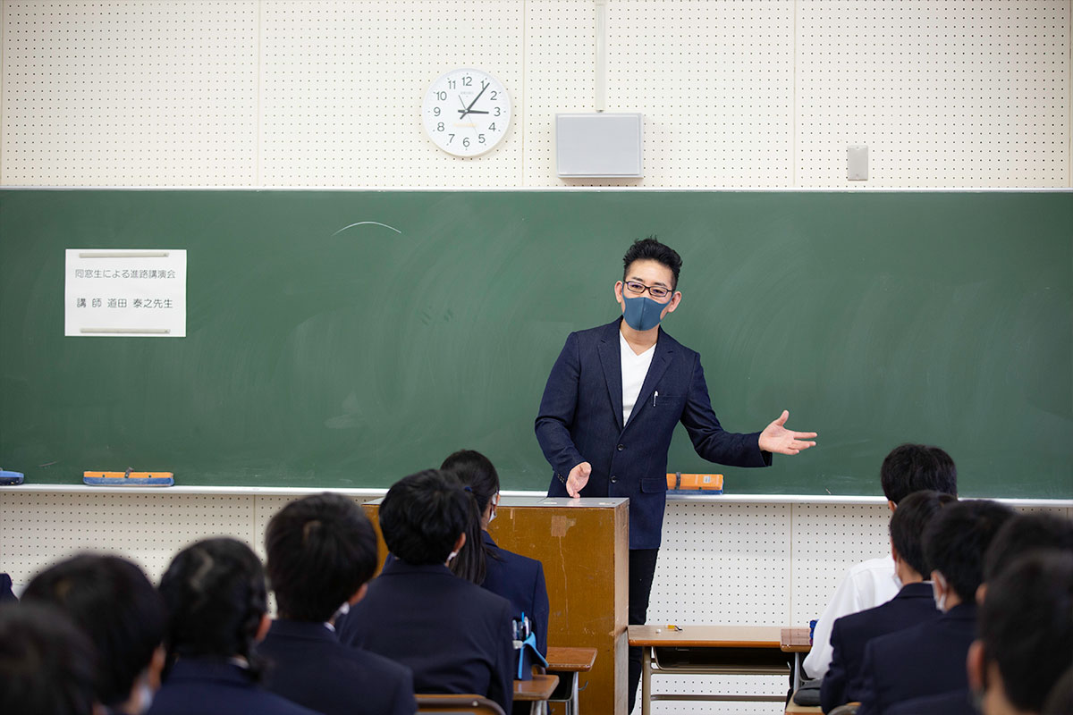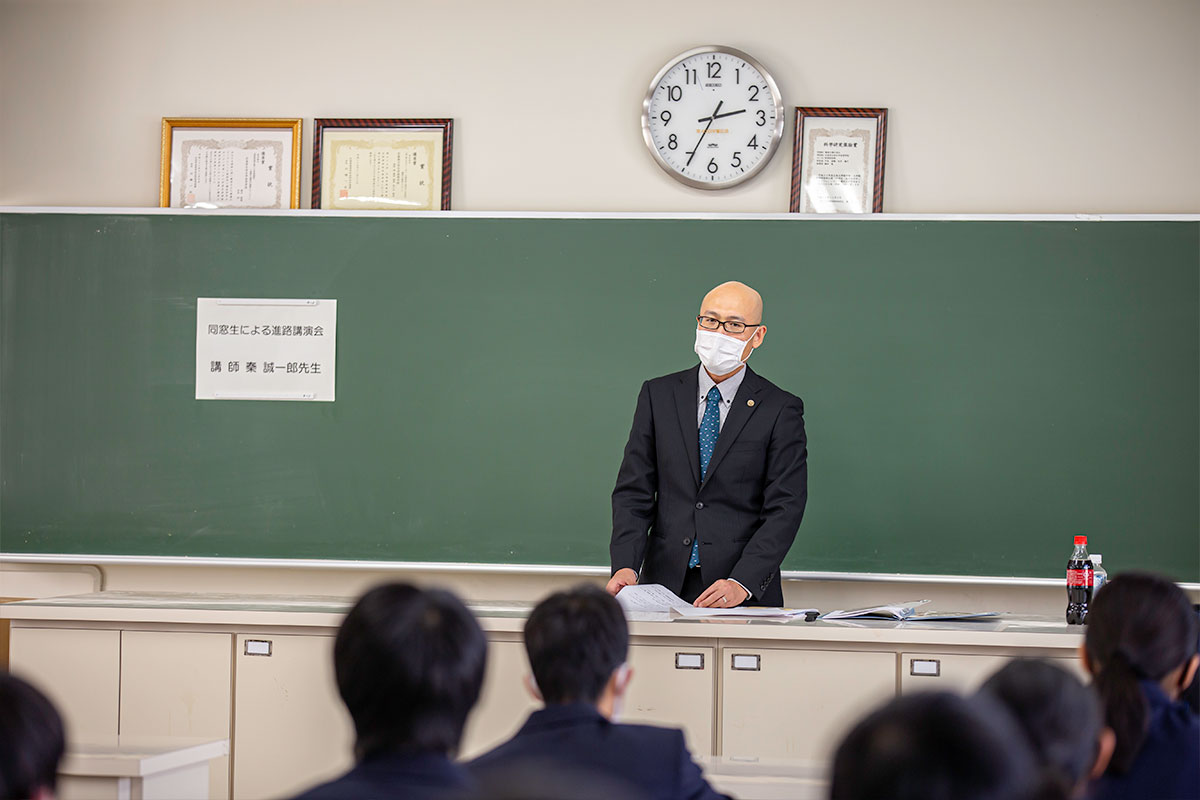 令和2年10月21日、6・7限の午後2時25分から午後4時15分で、本校卒業生による進路講演会が開催されました。