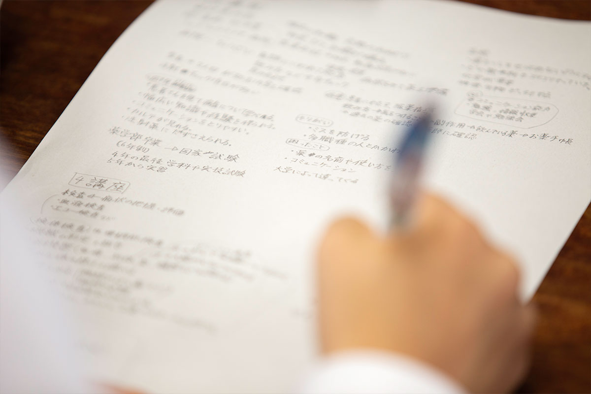 私は,病院薬剤師として働いています。薬剤師は働いている場所(病院・調剤薬局・製薬会社など)によって仕事内容が違い,自分に適した職場を選ぶことが大事です。 薬剤師の仕事というのは,窓口で患者さんに薬を渡して,何に効く薬か,どのように飲むのかを説明することだけだと思うかもしれませんが,実はそこに至るまではたくさんの過程があります。 医師が,患者さんに必要な薬(飲み薬や注射など)を処方します。それに対し薬剤師は,使い方や量は正しいのか,その患者さんに対して適した薬なのか,薬が数種類ある場合には一緒に使用しても問題はないか等々たくさんのことを確認し,問題がある場合には医師に報告します。ここで内容が変わることは多々あり,薬剤師の必要性を感じる瞬間でもあります。 そして,必ず複数の薬剤師でチェックをしながら薬を準備します。その後にようやく患者さんへ薬の説明を行い,副作用がないかどうか,きちんと薬の効果が現れているかどうか確認します。副作用の前兆を感じた時には,すぐに医師に報告し適切な処置をとります。患者さんの気持ちや要望などを汲み取って橋渡しをすることも大切な仕事のひとつです。 大学を卒業し国家資格を取得後,病院薬剤師として働き始めて一番苦労したのは,薬の使い方がわからない!!ということです。 例えば,高血圧の薬はかなり沢山の種類があり,効き方が少しずつ違ったり,それぞれに特徴があります。その中で,どういった場合にどの薬を選択するのか,実際に現場で経験的に学ぶしかありません。 そのため,大学時代はもちろん勉強しましたが働き始めてからもかなり勉強を必要としました(むしろ,働き始めてからの方が勉強したかも・・?)。 医薬品は絶えず新しい薬が開発されており,また既存の薬でも新しい使用方法ができたり,常に最新情報を集めておくことが大切です。 私が高校生だった時,最初から薬剤師を目指していたわけではありませんでした。高校の先生には怒られそうですが,実はあやふやなイメージで薬剤師っていいかもなぁ・・と思って選んだ将来でした。病院薬剤師の仕事は大変なこともありますが,ミスを未然に防いで医師に感謝された時や患者さんの不安を解消できた時などやりがいを感じることが多く,また専門的な知識が身についていくのでずっと続けていきたいと思える仕事です。 |