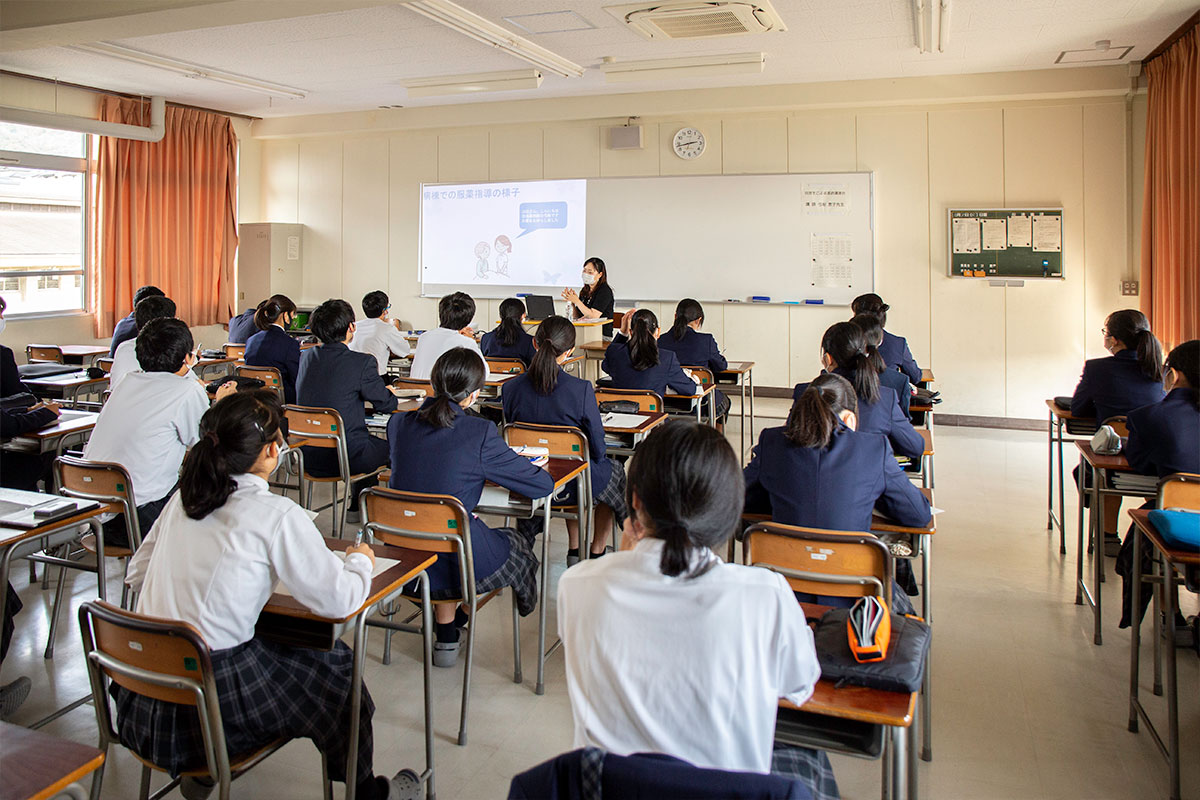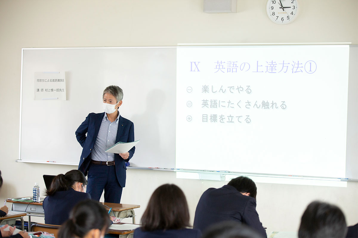 - キャリア教育の一環として,第1学年生徒全員が,安古市高等学校の卒業生や保護者,学校関係者等の社会の第一線で活躍する人生の先輩方から,高校・大学生時代の生活や仕事,また社会人にとって必要な資質等についての講演を聴くことで,適切な職業観の涵養を図り,将来を見すえた進路設計の構築に資する。