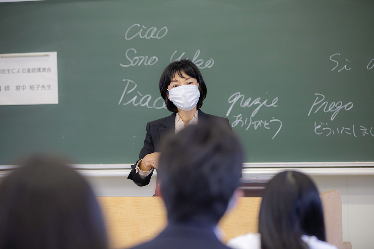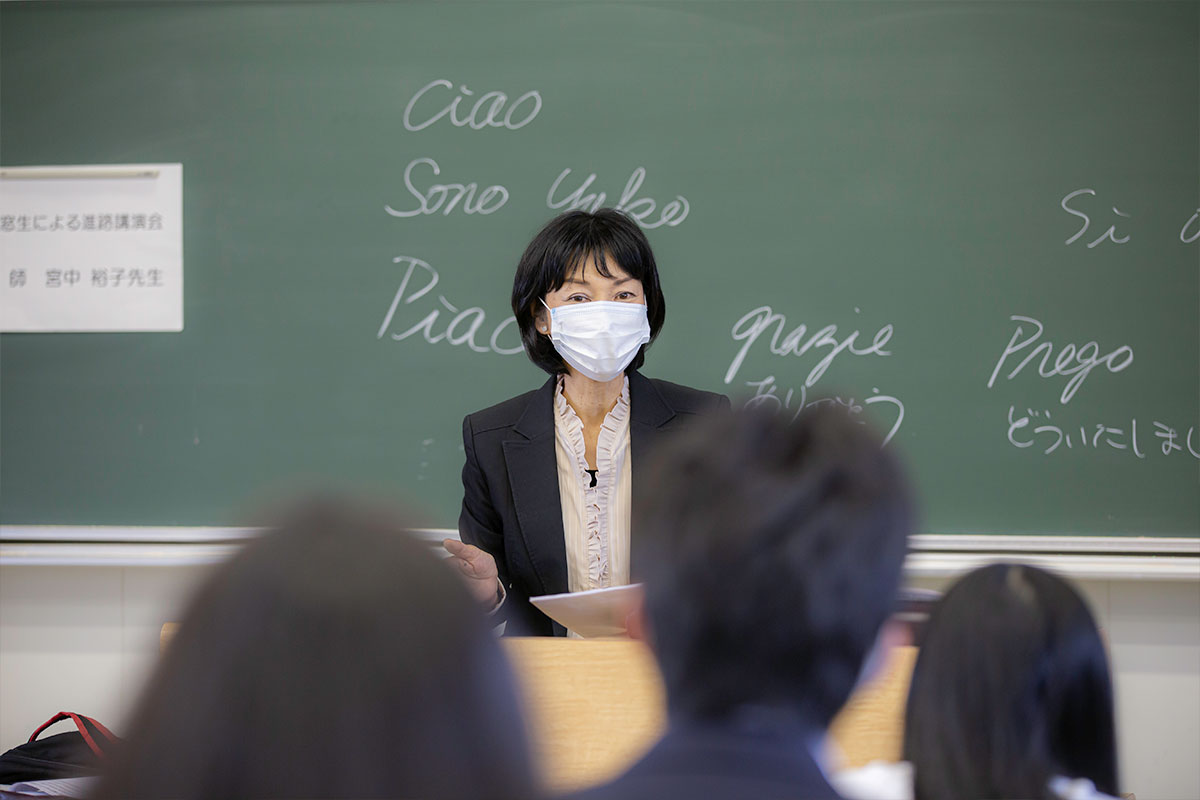 私は、フルーティスト、ソプラノ歌手、イタリア語の通訳の仕事をしています。フルーティストと言うとたまに「果物屋さん?」って聞かれたりすることもありますが、フルートを吹く事を生業としています。演奏に関して言えば、好きであること、根気があること これだけそろえば誰だって出来ます。 大学を卒業して2年間小学校の音楽の教員をし、その後7年間イタリアに留学しました。現在は広島にいて、中四国地方、東京、ヨーロッパで、リサイタル、オーケストラ、協奏曲のソリスト、室内楽などの分野で活動しています。 幸いなことに音楽を通して私は様々な国の人たちと友達になることができましたが、それと同時に言葉の重要性を痛感しました。やはり何といっても国際社会では英語が一番ポピュラーだしどこでも通じやすいけれど、イタリア語やドイツ語の独特の面白さも、やはり使ってみて初めてわかります。 2019年3/28~4/28まで1か月ヨーロッパにいて、コンサートをしたり、オペラに通ったり、イタリアで29年ぶりに友人と再会したりしました。直接進路とは関係ないけれど、向こうで感じた事、考えたことなどお話できたらなと思っています。 |