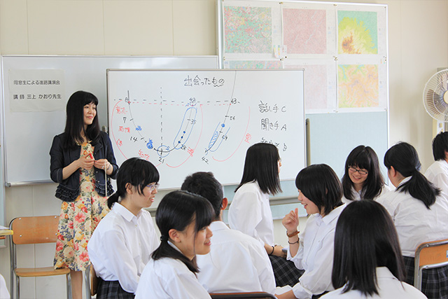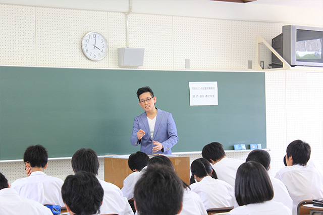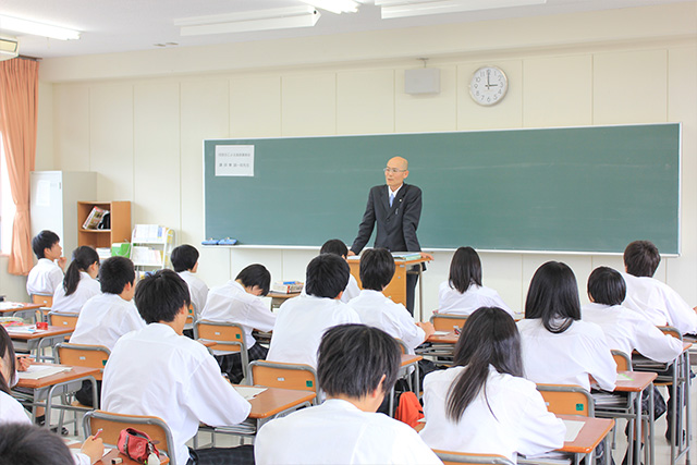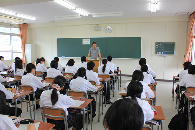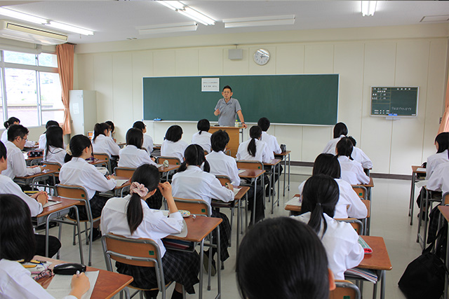 - キャリア教育の一環として、第1・2学年生徒全員が、安古市高等学校の卒業生や保護者、学校関係者等の社会の第一線で活躍する人生の先輩方から、高校・大学生時代の生活や仕事、また社会人にとって必要な資格等について講演を聞くことで、適切な職業感の涵養を図り、将来を見据えた進路設計の構築に資する。